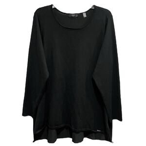 Tahari Women Minimalist High Low Hem Knit Sweater Size 2X Black Preppy Classic