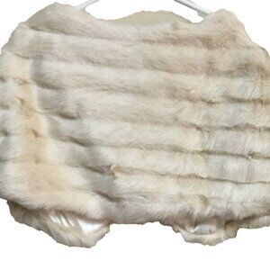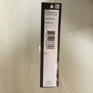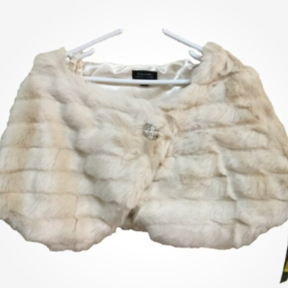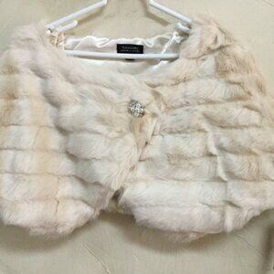 Tahari Women Size L Faux Fur Cape Wrap Capelet Champagne Pearl Brooch NWT $119