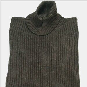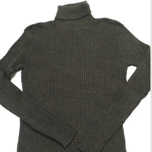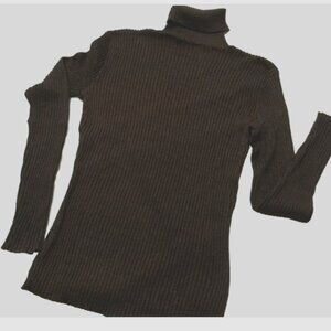 Tahari Women Size P Turtleneck Sweater Dark Brown Sparkle Ribbed Knit 97% Silk
