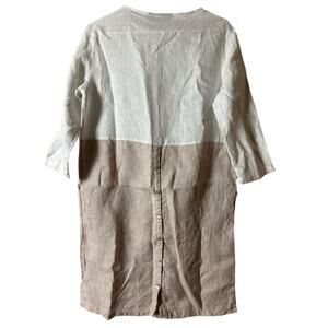 Tahari Women's 100% Linen Color Block Three Quarter Sleeve Dress Sz S
