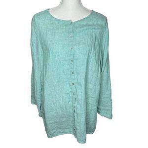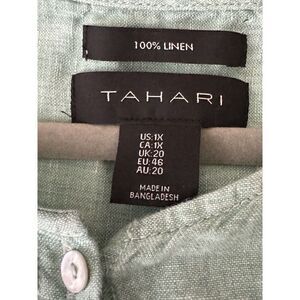 Tahari Womens 100% Linen Lagenlook Oversized Tunic Top Green Sz 1X