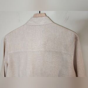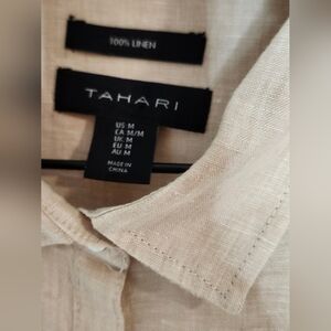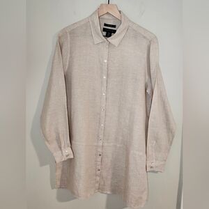 Tahari Women's 100% Linen Tunic Top Size M Khaki Roll Tab Minimalist Scandi Chic