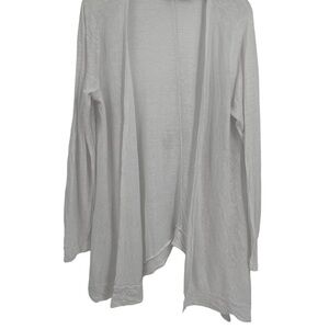 Tahari Womens 1X Linen Cardigan Sweater White coastal beach Draped Longline. Banded hemline. Long sleeves. Bust 48. Length 35. Measurements are approximate. Side slits. Very good preowned condition.