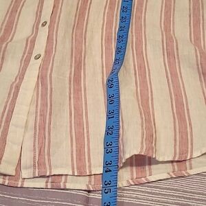 Tahari Women's 1X Linen Mauve Pink White Button-up Tunic Blouse Beachy Cottage