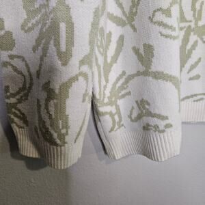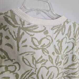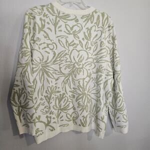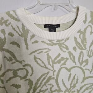 Tahari Womens 1X Sweater White & Green Floral Crew Neck Super Soft
