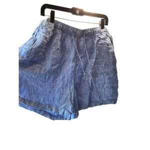 Tahari Women’s 1X Blue Chambray Linen Pocket Costal Granny Lagenlook Shorts
