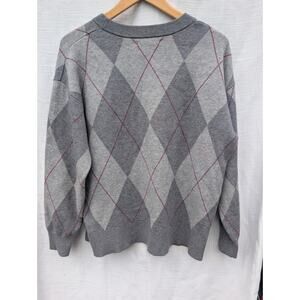 Tahari Womens Argyle Diamond Print Crewneck Pullover Sweater Sz L Gray Academia. Sweater is in very good condition with minimal signs of wear.