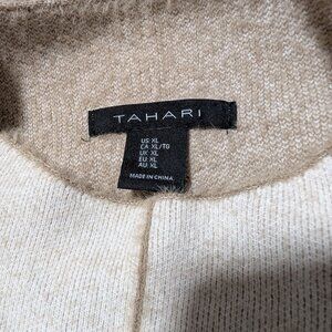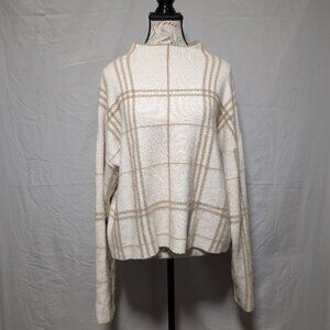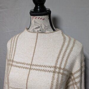Tahari Women's Beige Cream Plaid Mock Neckline Soft Knit Textured Sweater