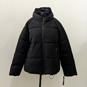 Tahari Women's Black Knit Faux-Fur-Collar Puffer Coat Size M (MSRP $280)