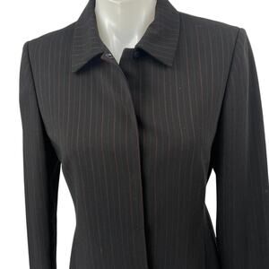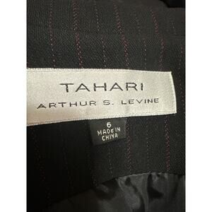 Tahari Women's Black Pinstriped Long Sleeve Button Up Trench Coat Jacket Size 6