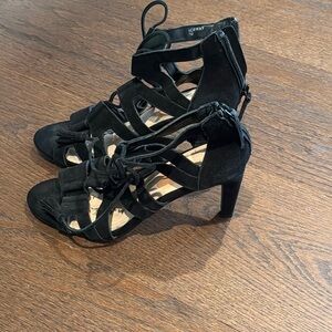 Tahari Women’s Black Suede Strappy High Heels Size 7