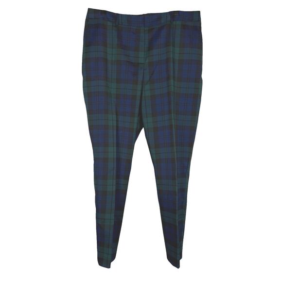 Tahari Women’s Black Watch Tartan Plaid Trouser Pants Black Green Size 14 Holiday Classic NY