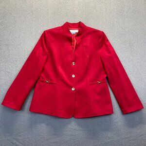 Tahari Women's Blazer Solid Red Gold Buttons Long Sleeve Lined Size 18