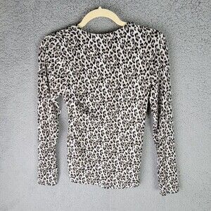 Tahari Women' Blouse Top Size Medium Animal Print Long sleeves Surplice Neckline Gold Buckle Feature creating a slimming effect Stretchy knit.