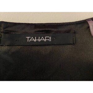 Tahari dress features a striking blue and black pattern, making it suitable for both professional and formal settings. Its sleeveless design and A-line silhouette offer a comfortable yet stylish fit. Crafted from a polyester and rayon blend, the dress is fully lined for a smooth finish.