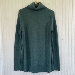 Tahari Women's Blue Green 100% Cashmere Turtleneck Tunic Sweater Size Large