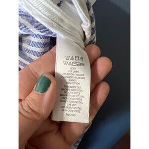 Tahari Womens Blue & White Linen Blend Sleeveless JumpsuitBelt Sz 6 Boho Beachy