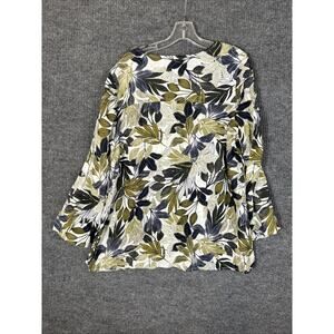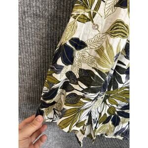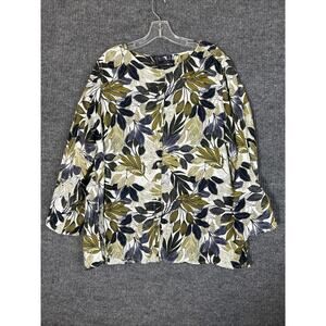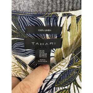 Tahari Womens Button Up Shirt 2X Linen Tropical Floral Resort Boho Long Sleeve