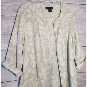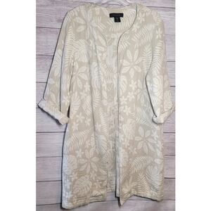 Tahari Womens Cardigan Sweater Size M Linen Blend Beige Cream Open Front Floral