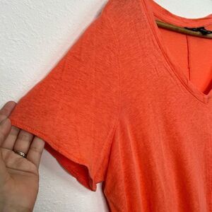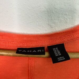 Tahari Women’s Coral Orange Linen Lyocell V Neck Short Sleeve Top Size 1X