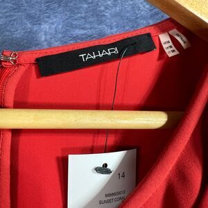 Tahari Womens Dress Orange Red Sz 14 Sleeveless Knee Length Sheath