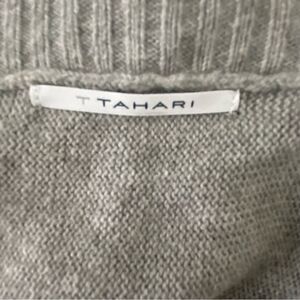 T Tahari Womens Gray Cotton Blend Longline Duster Cardigan Fringed Sweater Boho Contemporary Office Western