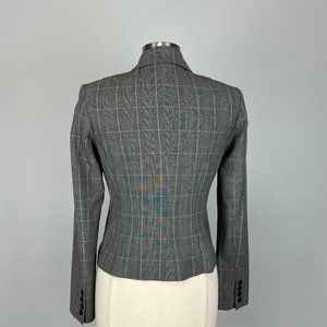 Tahari Womens Gray Glen Plaid Blazer Button Front Cropped Pockets size 6