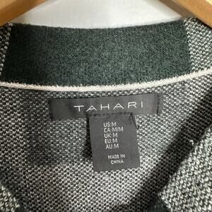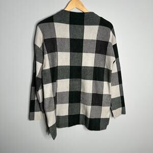 Tahari Women's Green + White Plaid Mock Neck Medium Weight Sweater Size M