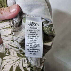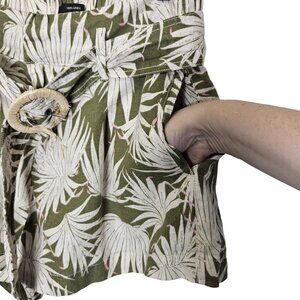 Tahari Womens Green & White Tropical Leaf Print Linen Shorts Belt Pockets L