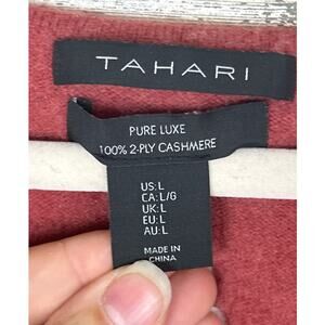 Tahari cashmere sweater, women’s L coral pullover, dark coral V-neck sweater, Tahari women’s clothing, luxury cashmere knitwear, timeless cashmere sweater, soft cashmere pullover, elegant Tahari sweater