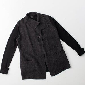 Tahari Women’s Large Wool Blend Open Front Cardigan Jacket Black Gray Coat