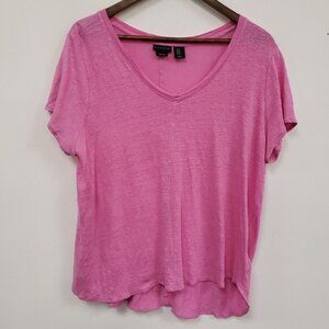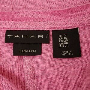 Tahari Womens Linen Beachy Short Sleeve Top Size 1X Coastal Island Vacation