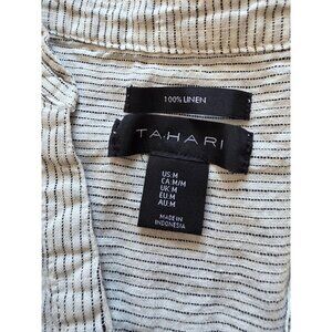 This Tahari dress is crafted from breathable linen, offering both comfort and style. Its subtle striped pattern and long sleeves make it versatile for various occasions. The dress provides a relaxed fit, ensuring ease of movement. It's suitable for warmer weather, making it an ideal addition to your spring or summer wardrobe.