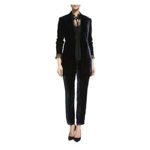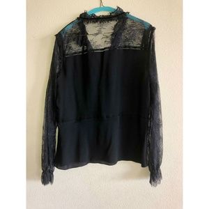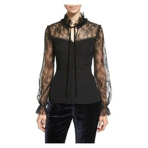 Elie Tahari "Cecille" silk blouse with lace insets and trim.