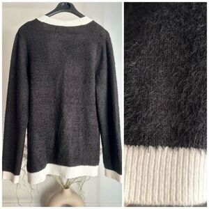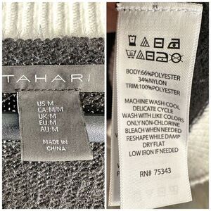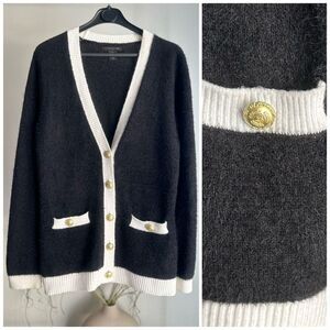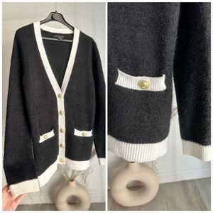 Tahari Women’s M Black White Trimmed Eyelash Soft Button Cardigan Sweater