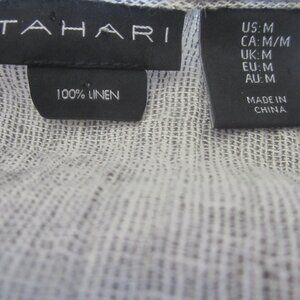 Tahari Womens M Gray Loosely Woven Linen Relaxed Tunic Back Buttons Short Sleeve