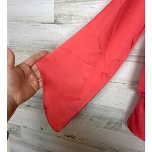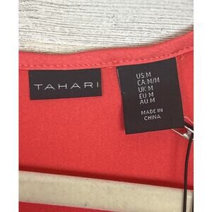 Chic and feminine, this Tahari women’s size medium blouse features a soft silky fabric in a beautiful pink hue. Designed with a flattering V-neckline, tie knot front, and subtle flare sleeves, it offers an elegant look perfect for work or evening wear. Lightweight and sophisticated, this blouse adds effortless polish to any outfit. Brand new with tags.