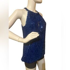 Tahari Womens M Top Sleeveless Blue Curacao All Over Sequins Halter Neck NWT
