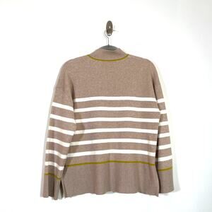 Tahari Womens Mock Neck Striped Sweater Brown White Size Large Preppy Soft NWT