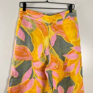 Tahari Women's Multicolor 100% Linen Elastic Waist High Rise Capri Pant Floral M