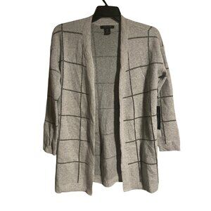 Tahari Womens Open Front Cardigan Sweater Size S Cashmere Blend Gray Windowpane