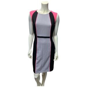 Tahari Women's Pink Grey Black Colorblock Sheath Dress Size 4 Career Cocktail