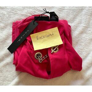 This Tahari short-sleeve top combines vibrant pink with a chic keyhole neckline, offering a blend of comfort and style for versatile casual wear.
