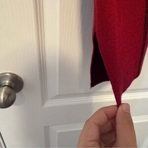 Red and black - longer length - small slits on side - rayon/polyester/nylon blend