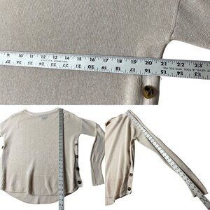 Tahari Women's Small Lightweight Linen Blend Crew Neck Sweater Side Buttons Pullover Beige