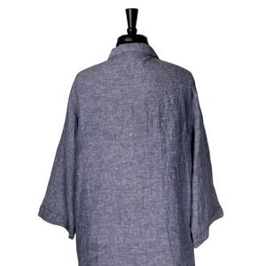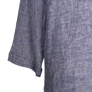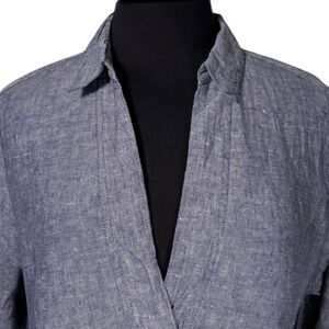 Tahari Women's Shirt Blue Linen V-Neck Blouse Lagenlook Summer Tunic Top Size M