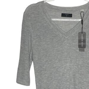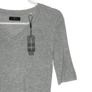 Tahari Womens Size Small Gray Cashmere Sweater V Neck Elbow Sleeves NEW MSRP $58