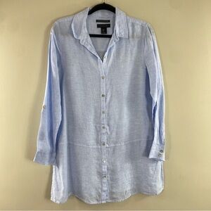 Tahari Women’s Sky Blue Gray 100% Linen Button Front Top Blouse Tunic Sz L
