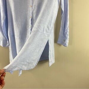 Tahari Women’s Sky Blue Gray 100% Linen Button Front Top Blouse Tunic Sz L