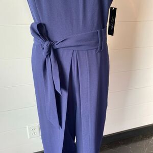 Tahari Womens Sleeveless Belted Split Leg Jumpsuit Solid Navy Size 10